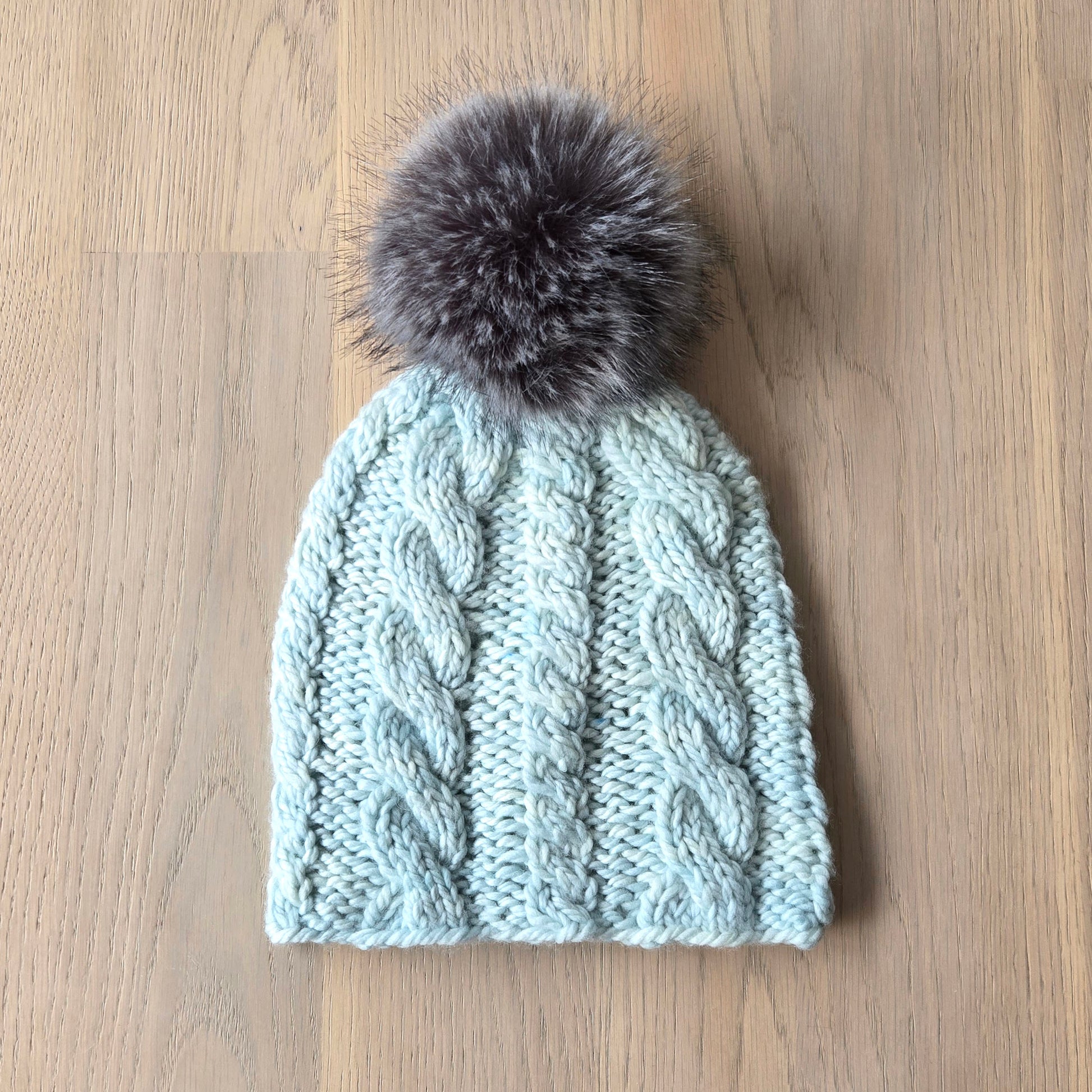 When you pick out your yarn, you can also pick out a cute pom pom to go on top of your hat! Ours is topped with a Luxe Faux Fur Pom in luxe smoke.