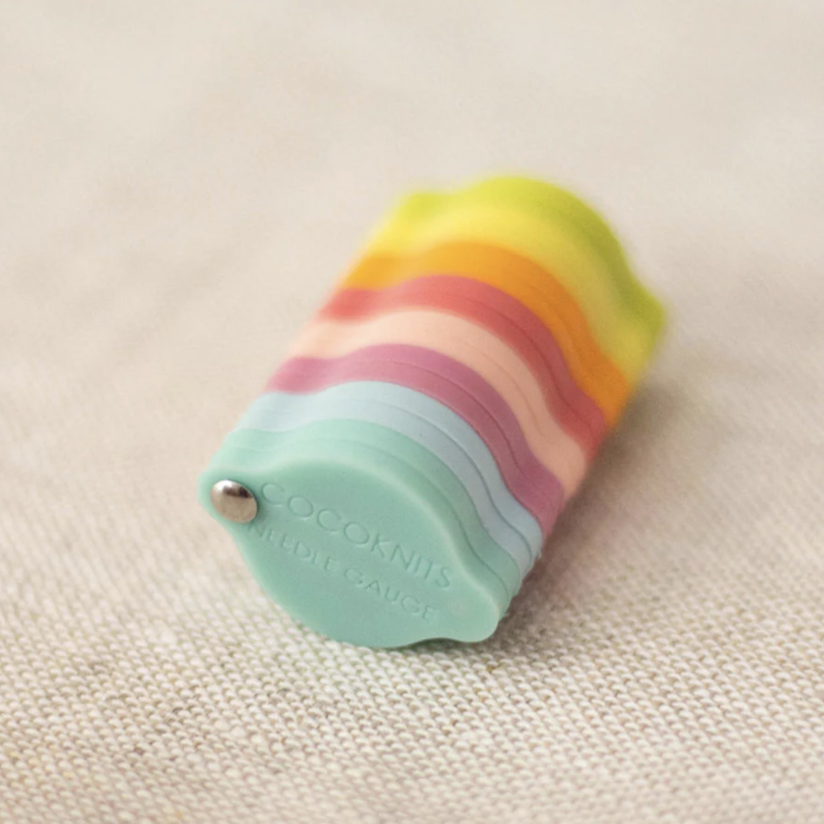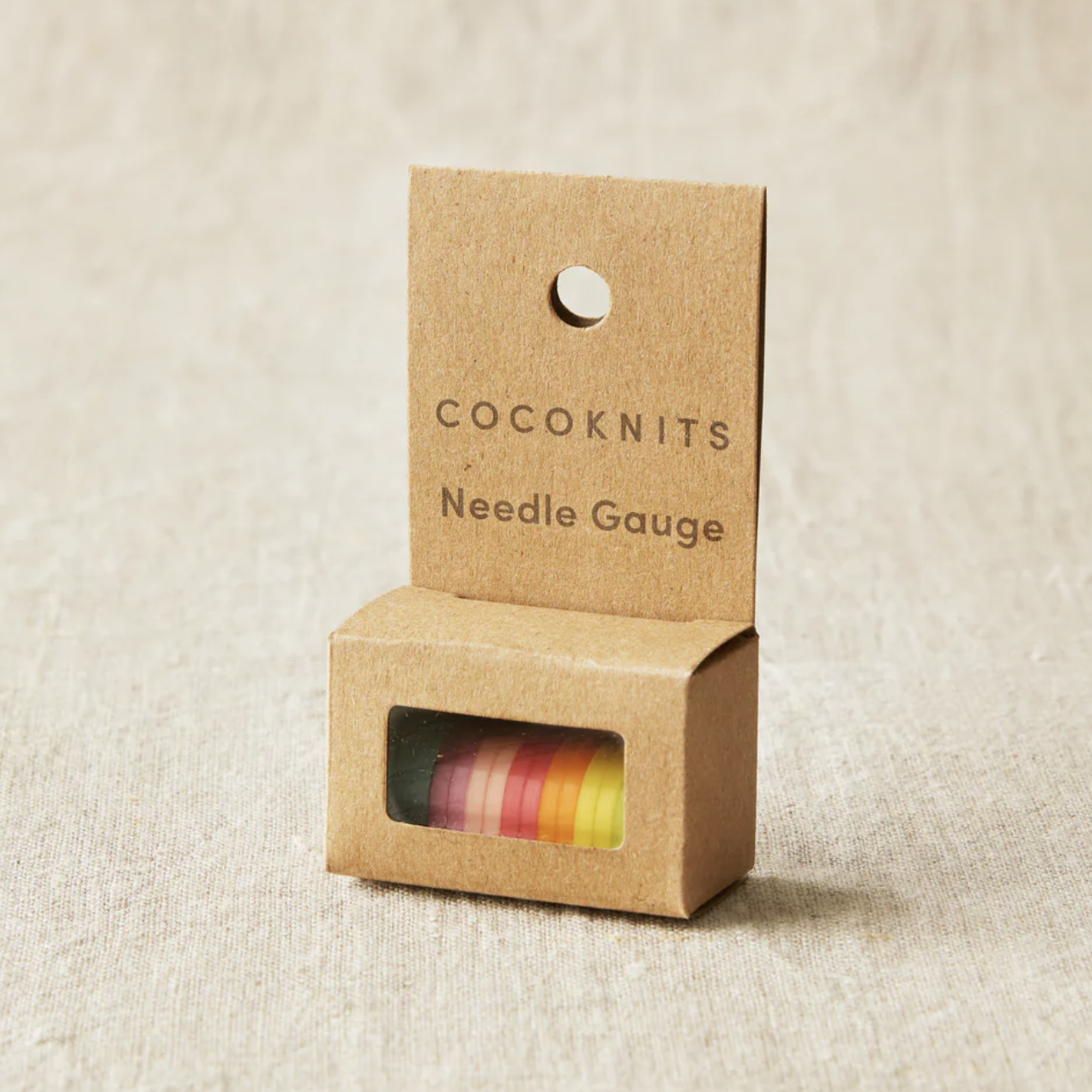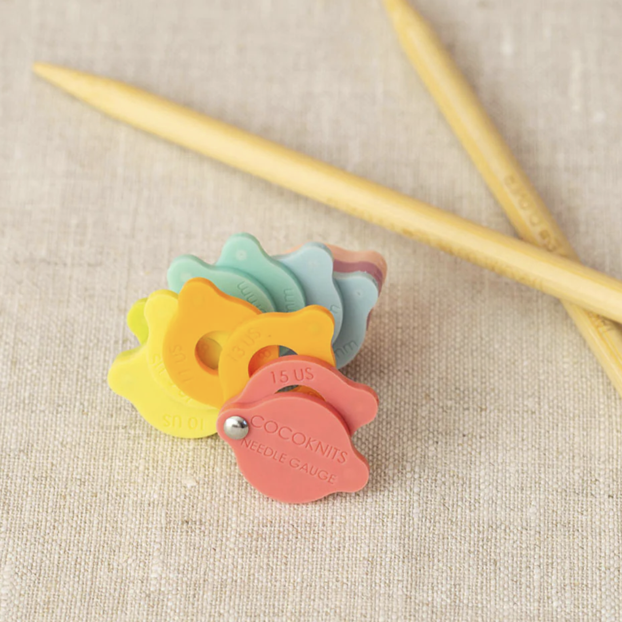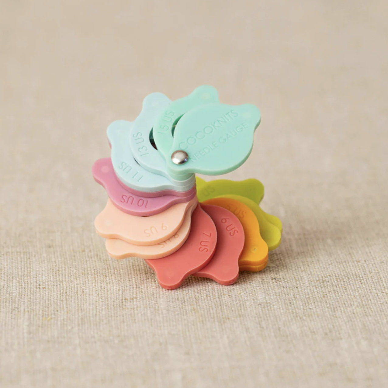 Figure out what size your needles are wherever you are! This handy little tool has a disc for each size that swivels out to measure your needle, then clicks back together. At just 1" x 1.5", it's small enough to fit into your project bag, and measures needle sizes from US 0 all the way up to US 15.