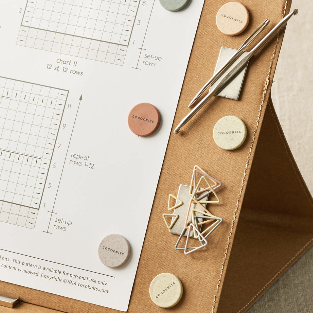 These magnets are made from plastic-free plant fiber and are so strong that you can use either side. Use them to hold patterns and charts on the Maker's Board (also great for recipes if you like to cook!). Six .75" diameter magnets are included.