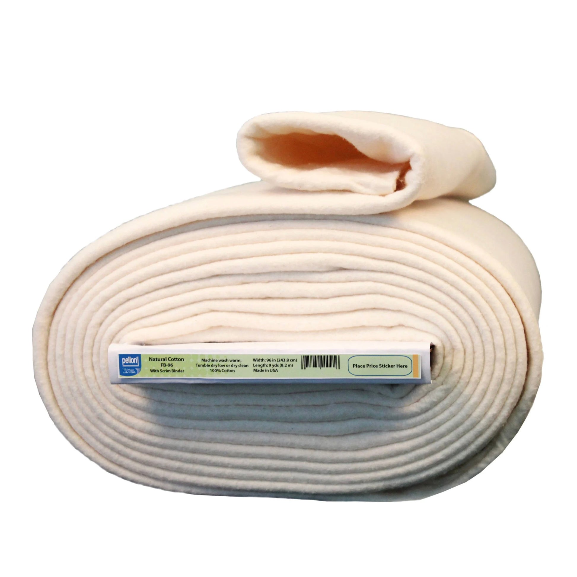 100% cotton needle punched batting. Soft and durable, perfect for all your quilting and crafting needs! The low loft construction (1-1/16" thick) is lightweight and breathable, and should be quilted up to 4" apart for best results.