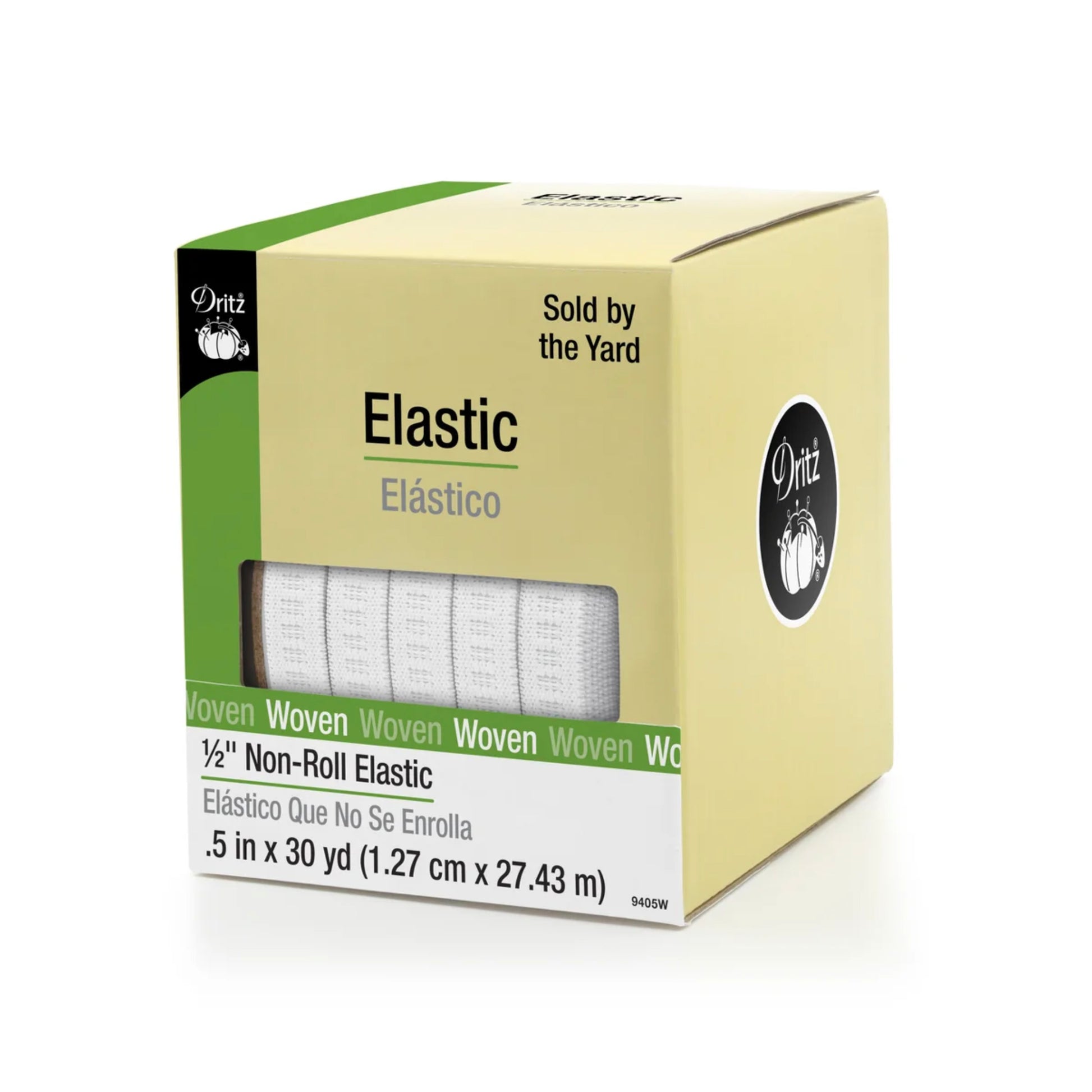 1/2" wide elastic sold by the yard. Designed to prevent rolling and twisting, ideal for waistbands and use with heavier fabrics.