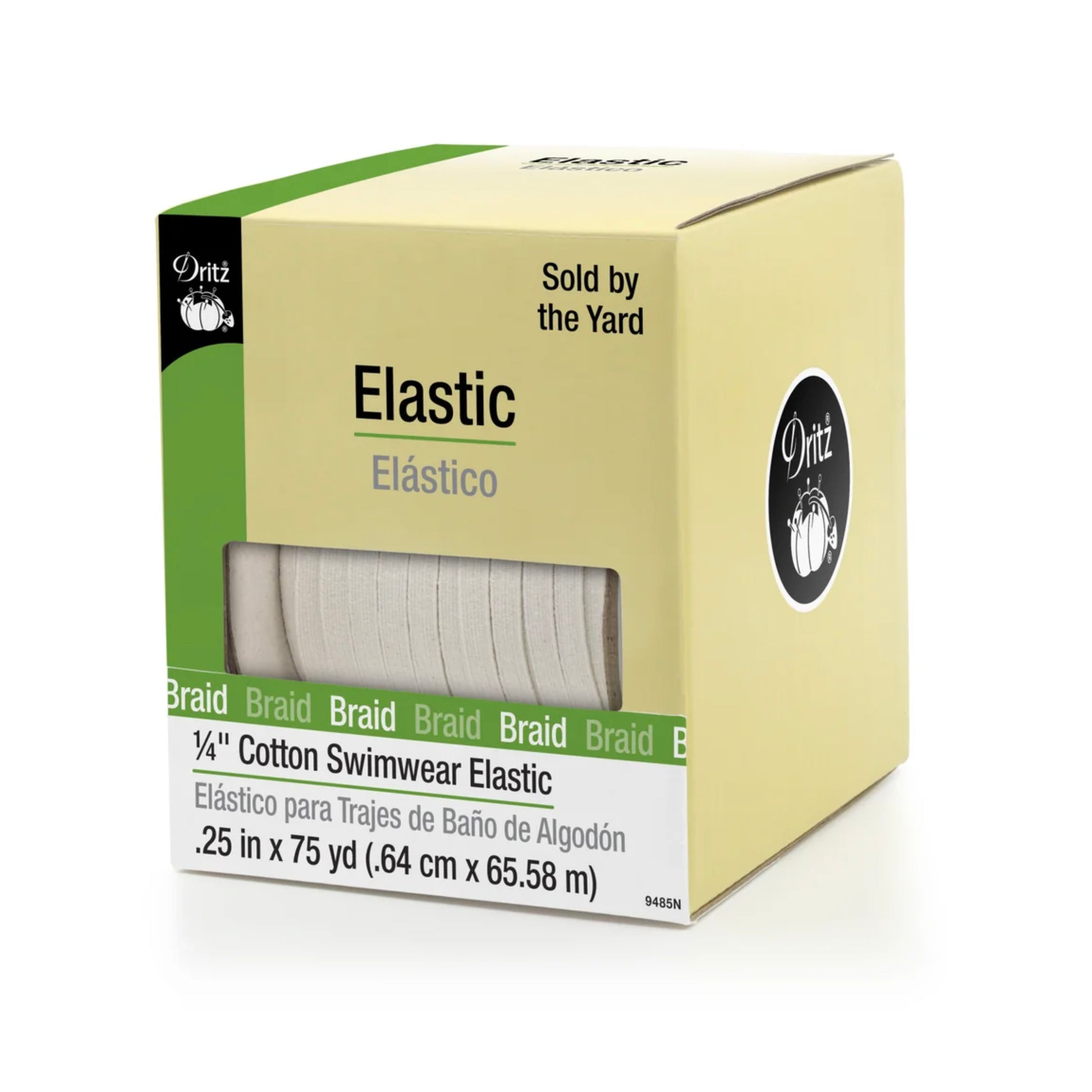 1/4" wide elastic sold by the yard. Flat and lightweight and perfect for swimwear and garments.