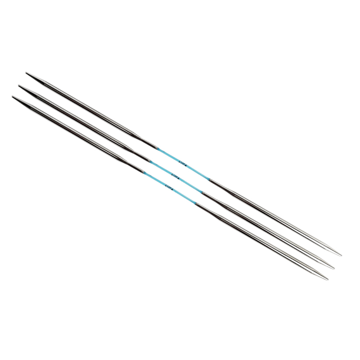 Try out this effortless method of knitting those small circumference projects like socks, tops of hats, sleeves and more. These are comfortable in the hand, acting as flexible double pointed needles without all the extra points. Simply use two of them and knit with the third, which means you only have to change needles twice per round instead of three or four times.