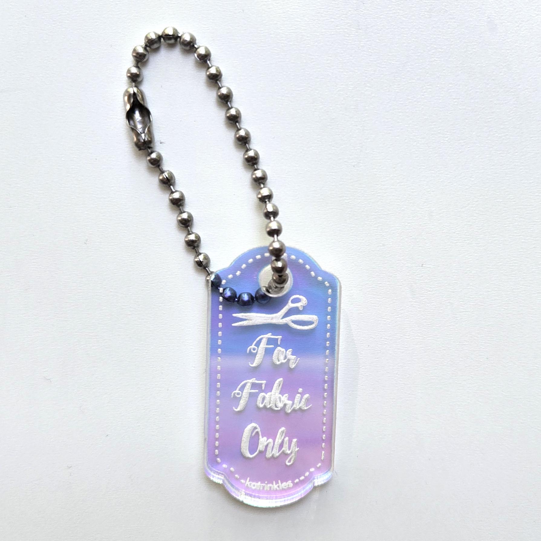 State it loud and clear, these scissors are for FABRIC ONLY! These cute tags have a 2" ball chain that easily loops onto your scissors. They also make a perfect gift for your fellow sewists! Wood tag is made of domestic cherry. Approximate Size: 3/4” x 1.5” x 1/8”