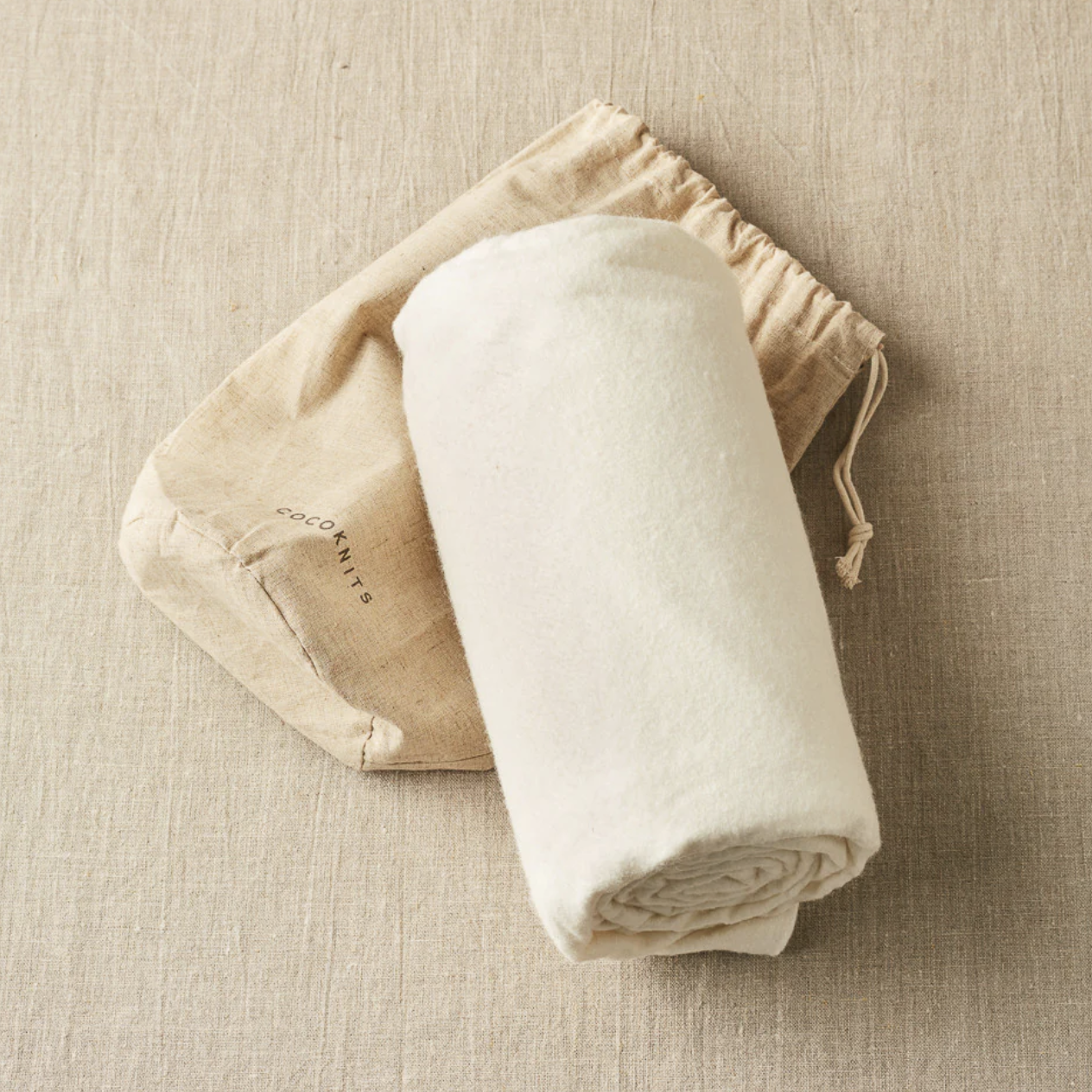 We like to think of this as a shammy for blocking! It really speeds up the air dry process by soaking up all the extra water first. It's incredibly lightweight but so much more absorbent than a regular towel. Made of 75% cotton, 10% PET polyester and 5% PE, this towel measures a generous 39" x 63" and you'll really notice the difference when blocking thick sweaters, blankets, and other large projects.