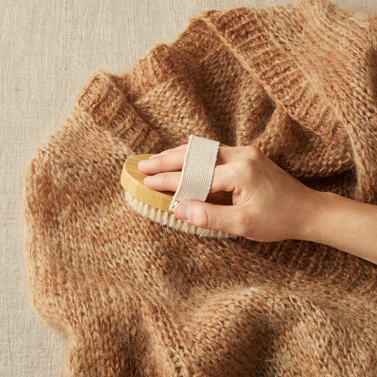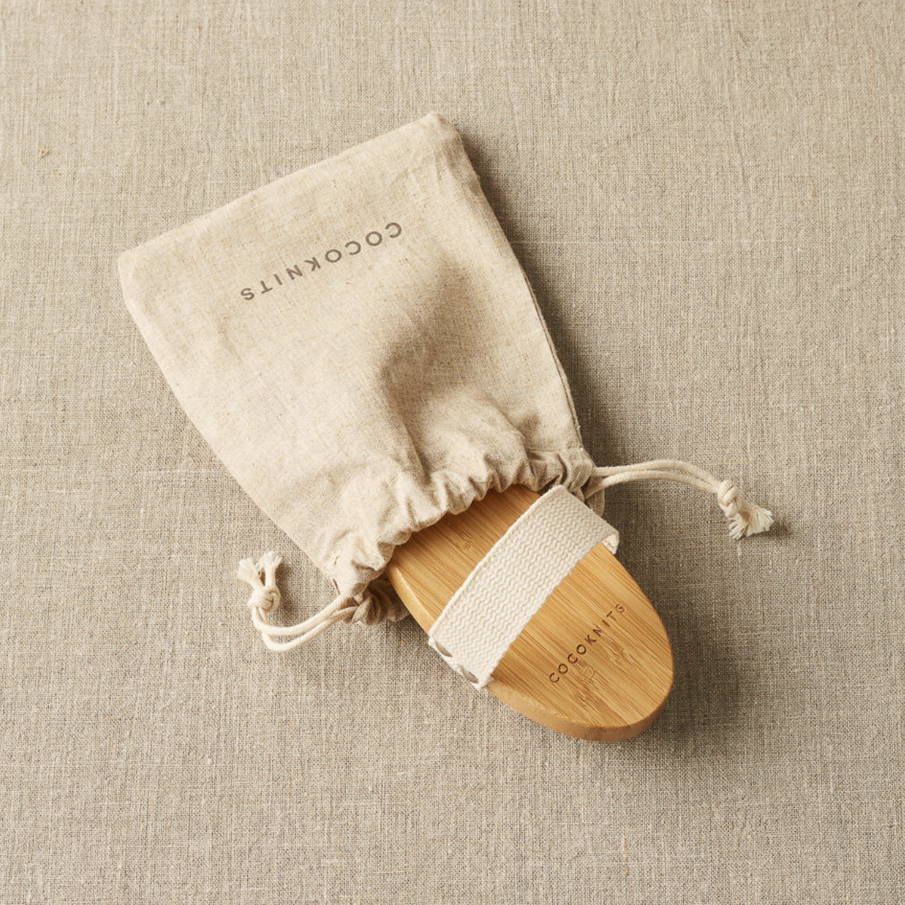The sweater care brush is another great tool to care for your handmade items! The natural boar bristles work better than synthetic bristles and the smooth bamboo is comfortable in your hand. This brush will remove pills while fluffing up airy fibers like mohair and alpaca. It'll also remove lint. Measures 5" x 2.5" x 1.25" and comes in a reusable linen bag.